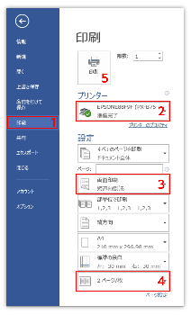 - Wordで印刷するには、[ファイルタブ]→[印刷]を選びます。
